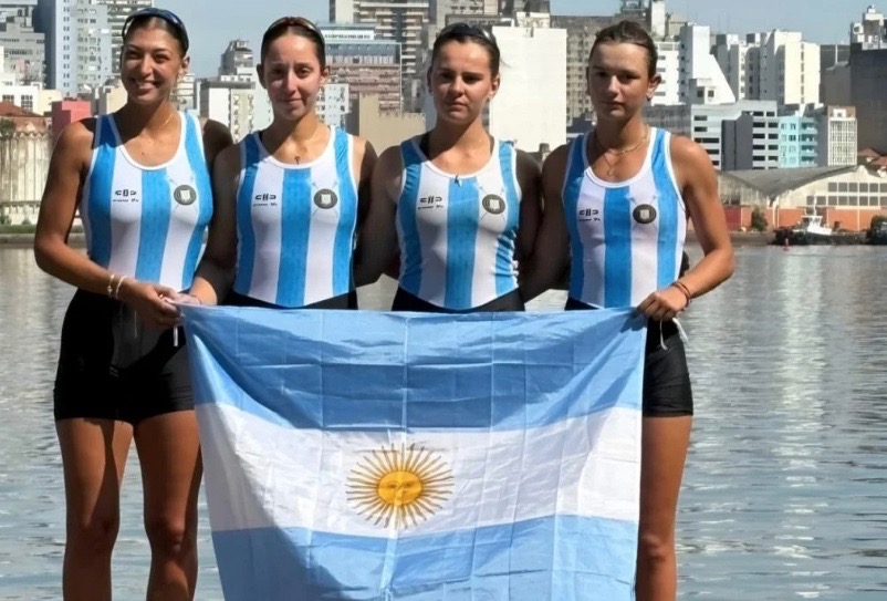En las pruebas por equipos también llegaron logros importantes. Uno de los puntos más altos fue el desempeño del cuádruple par femenino Sub 23, integrado por Guadalupe Salas, Victoria Riveros, Iara Simonutti y Catalina Denaro, que se consagró con la medalla de oro tras una actuación dominante en la final, superando a Brasil y Chile y confirmando el gran presente del remo femenino argentino.