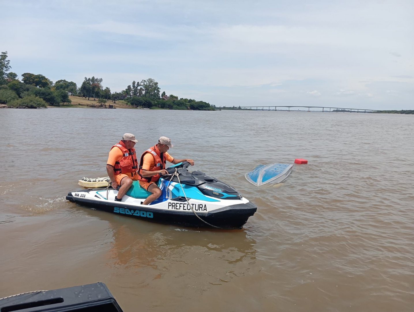 Personal de la Prefectura Naval Argentina rescató a cuatro personas tras el vuelco de la embarcación en la que navegaban sobre las aguas del río Uruguay, en inmediaciones de la localidad entrerriana de Colón