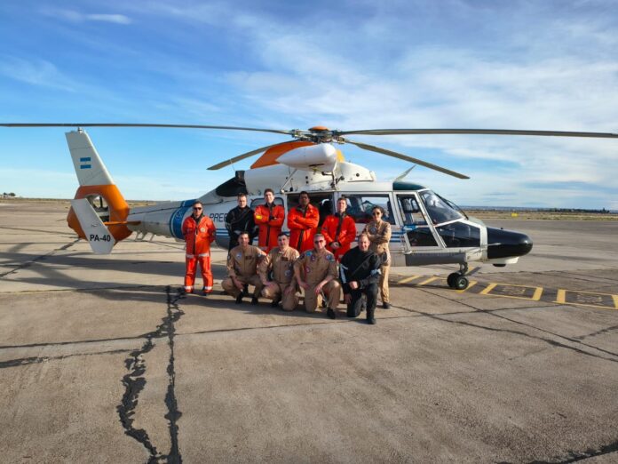 Por primera vez desde su reciente inauguración, la Estación Aérea Viedma desplegó un avión de patrullaje que sobrevoló la zona para evaluar condiciones y preparar el ingreso del helicóptero de rescate, que partió desde el aeropuerto de Comodoro Rivadavia.