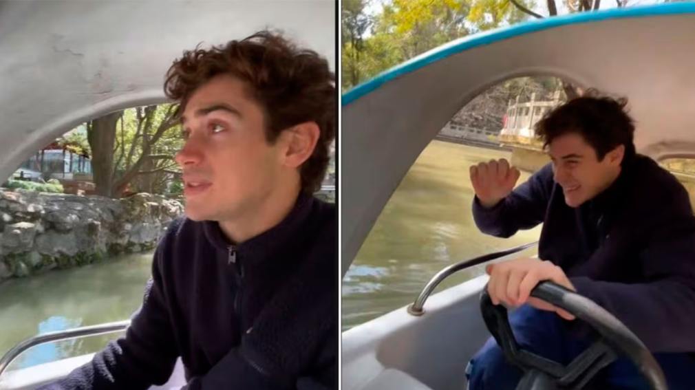Mientras disfrutaba de un paseo distendido por uno de los canales de la ciudad, el joven corredor decidió conducir una pequeña lancha a baja velocidad. En medio del recorrido intentó pasar por debajo de un puente, pero calculó mal la altura y la embarcación terminó golpeando suavemente contra la estructura.