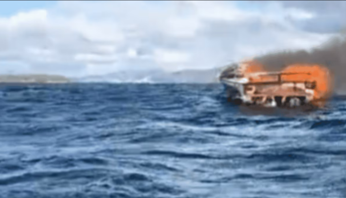 En el Lago Nahuel Huapi, cerca de San Carlos de Bariloche, una lancha se incendió mientras navegaba, aparentemente a causa de una falla en el motor que provocó una explosión y la rápida propagación del fuego.