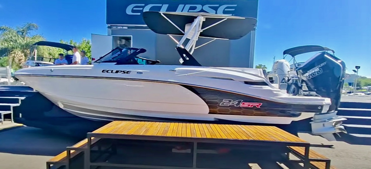 El tradicional Astillero Eclipse, con sede en Tigre, presentó en esta edición 2025 su más reciente creación: la Eclipse 24, una lancha que combina diseño, confort y elegancia con el sello distintivo de la marca. A primera vista, se destaca como una de las embarcaciones más atractivas del país. Con 7,32 metros de eslora, 2,59 metros de manga y 1,44 metros de puntal, ofrece un interior amplio y confortable. Su baño compartimentado, de generosas dimensiones, refleja el nivel de detalle y funcionalidad pensado para disfrutar al máximo cada jornada en el agua. La motorización fuera de borda admite un rango de potencia entre 250 y 400 HP, garantizando un excelente desempeño.