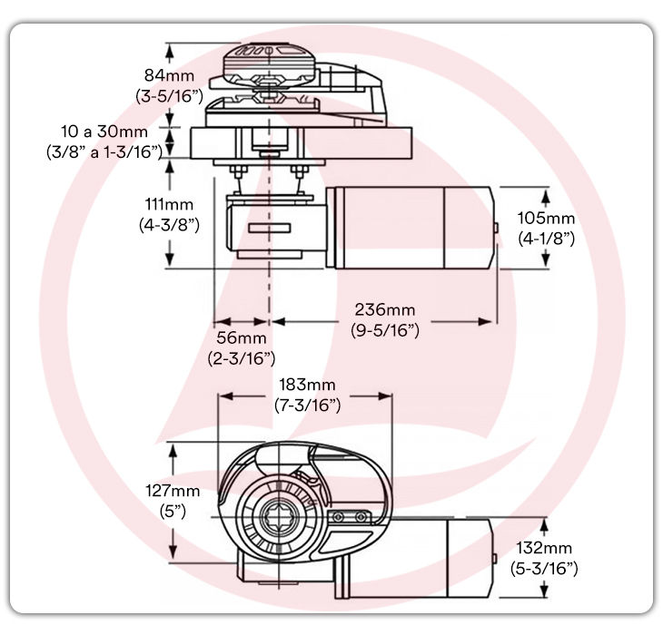 El cabrestante X1 de Lofrans’ (409557) posee una potencia de 500W – 12V contando con un diseño muy importante utilizando materiales de bajo peso, alta solidez y resistencia a la corrosión, con el motor y la transmisión ubicados bajo cubierta. La superficie del cabrestante está tratada con procesos químicos y galvánicos