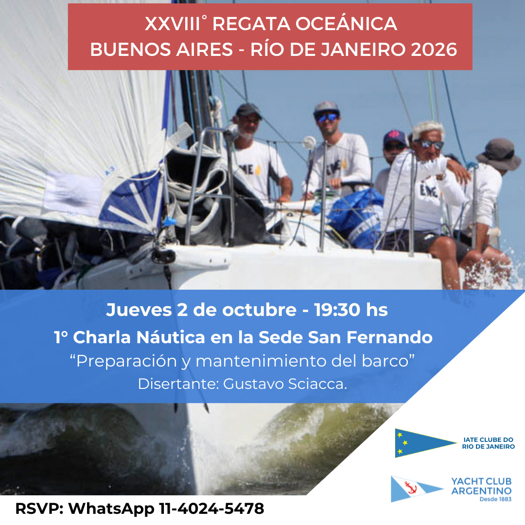 El Yacht Club Argentino invita a participar de la primera charla técnica, que estará a cargo de Gustavo Sciacca, reconocido experto en navegación oceánica y mantenimiento de embarcaciones.