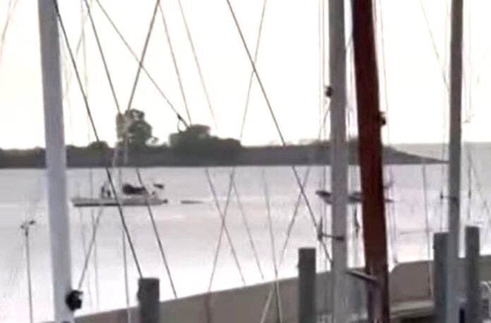 Imágenes difundidas en redes sociales mostraron al velero inmóvil en medio del río, así como el momento en que otras embarcaciones se aproximaron para colaborar y dar aviso a los servicios de emergencia.