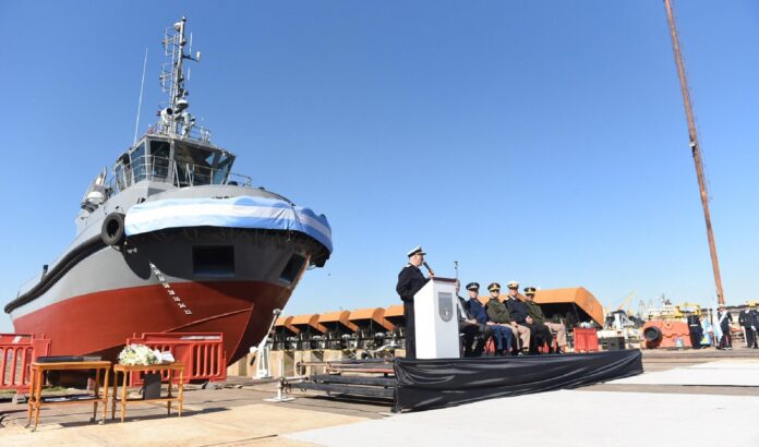 Buenos Aires — En el Astillero Tandanor del Complejo Industrial Naval Argentino, ayer se llevó a cabo la ceremonia de botadura del remolcador ARA “Pampero”, unidad diseñada para brindar apoyo de maniobra en puerto a los buques de la Armada Argentina.