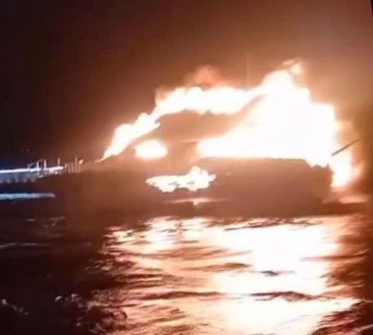 El viento de la madrugada avivó las llamas, y la embarcación quedó totalmente consumida por el fuego