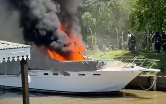 El incendio se inició en el interior de un yate con flybridge de aproximadamente 14 metros de eslora, amarrado en uno de los peines de Marina Punta Chica, dentro de uno de los predios del Consorcio Parque Náutico San Fernando.